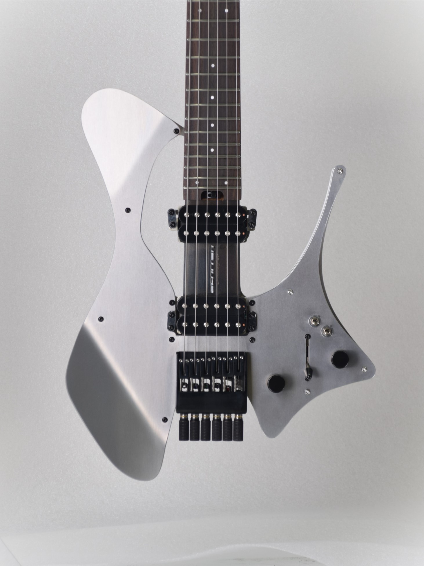 Pearson Omega 6 Standard – 25.5″ Straight Fret – Black – HH – Raw Aluminum
